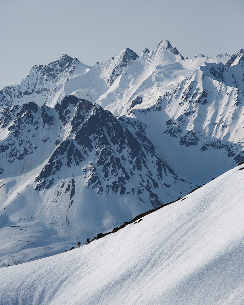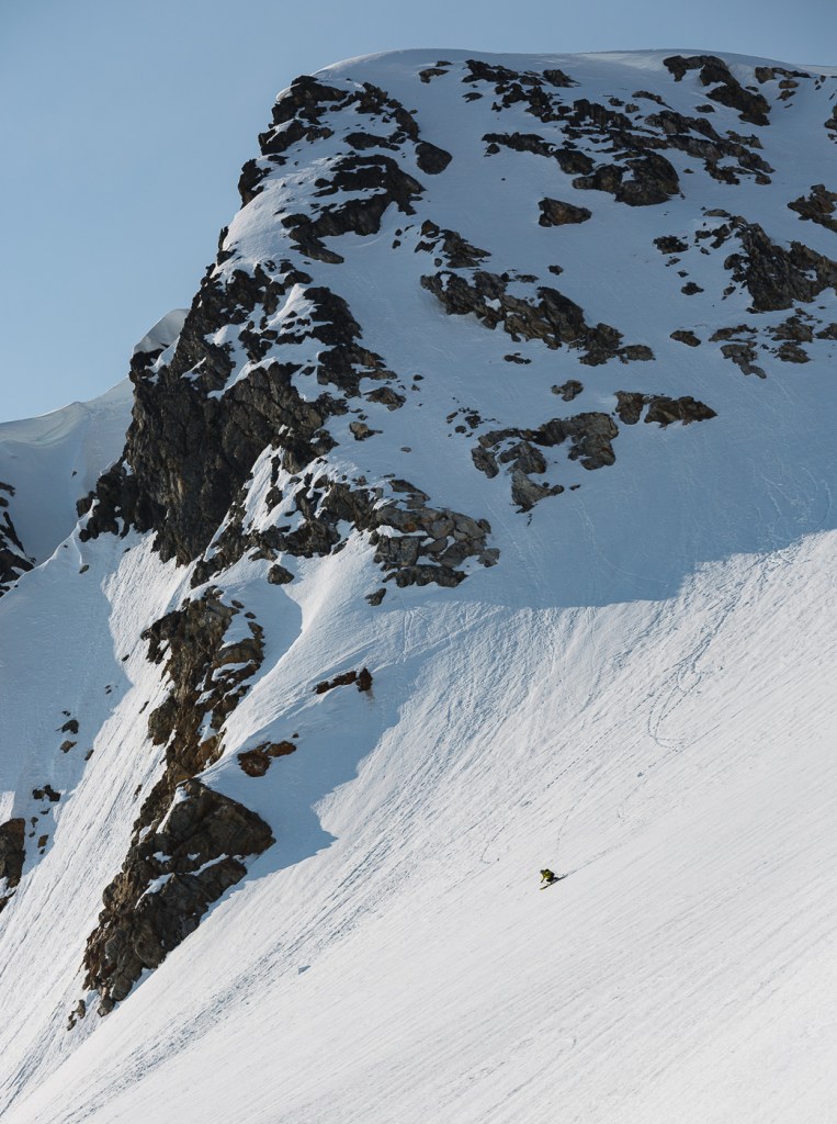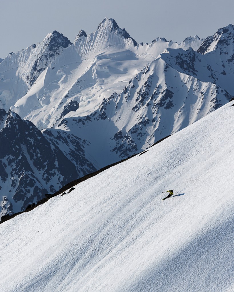 I stay on the other side to take photos. It was scary to find animal steps when I was away from my buddies. They had 2 runs in the face. One from east ridge and another from the skier’s left of SE peak on glacier.