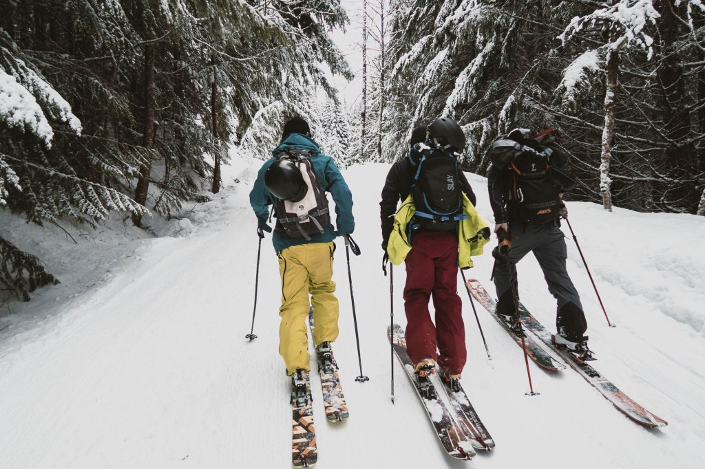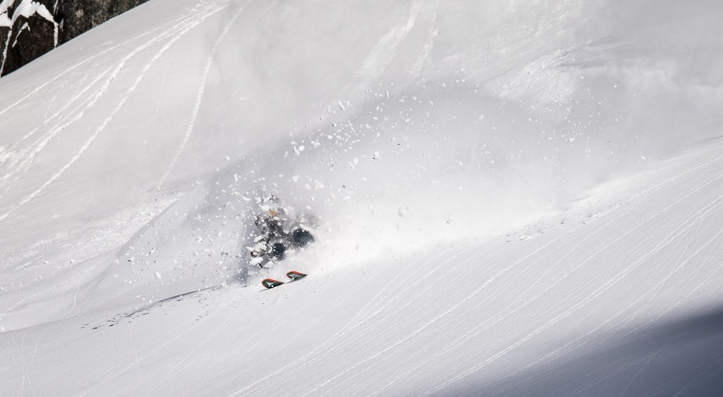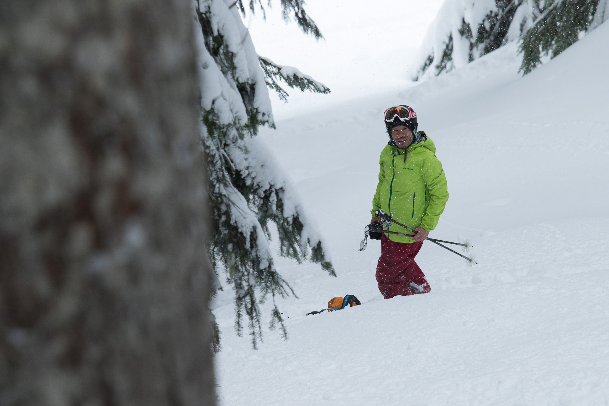 Avalanche danger was high on this day, and we found debris coming into forest from above. We stayed below tree line. Snow was really good, so it was all okay!