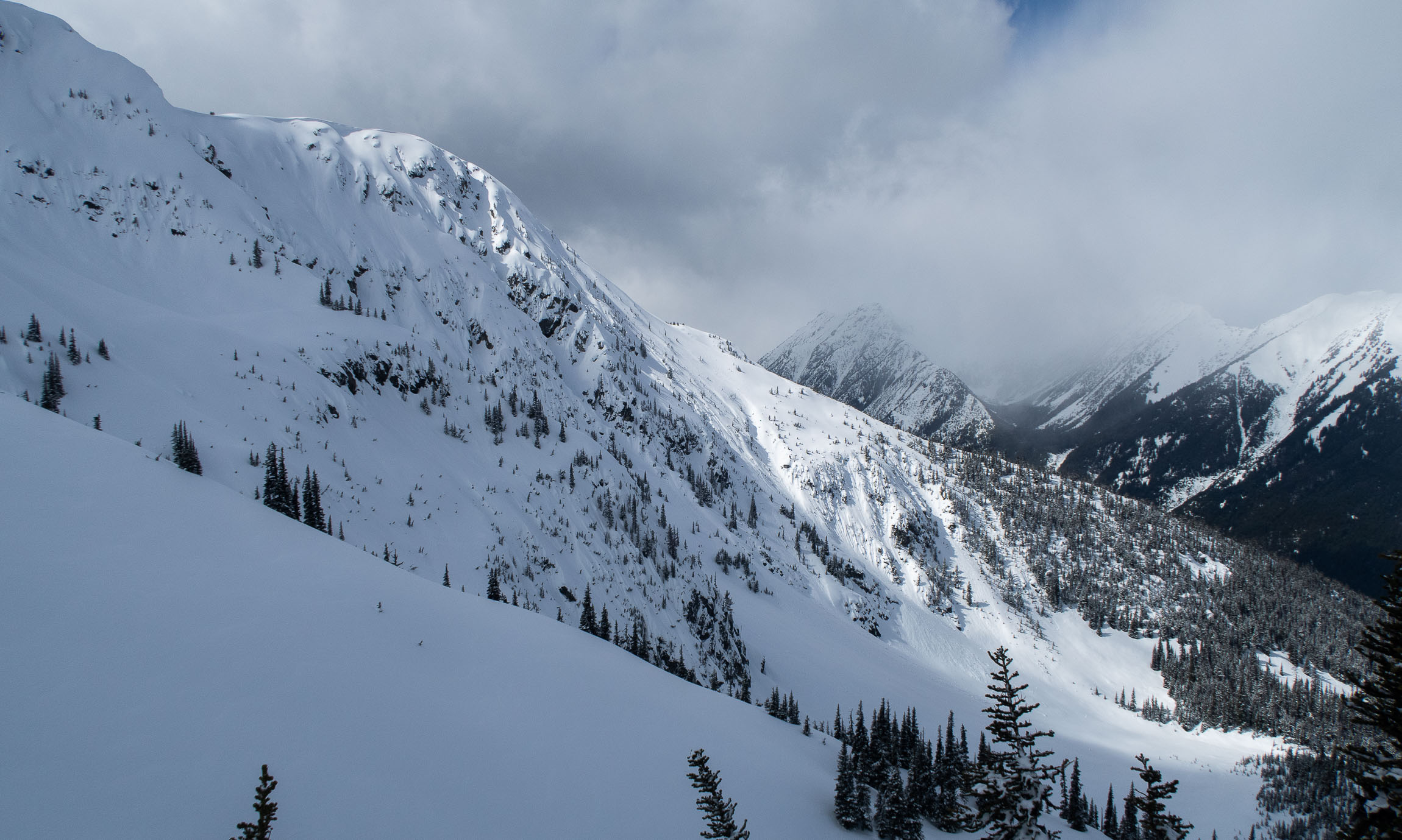 Steep Creek is a famous sled access backcountry touring area, but anyone can walk in there. We did not use a snowmobile on this trip.
