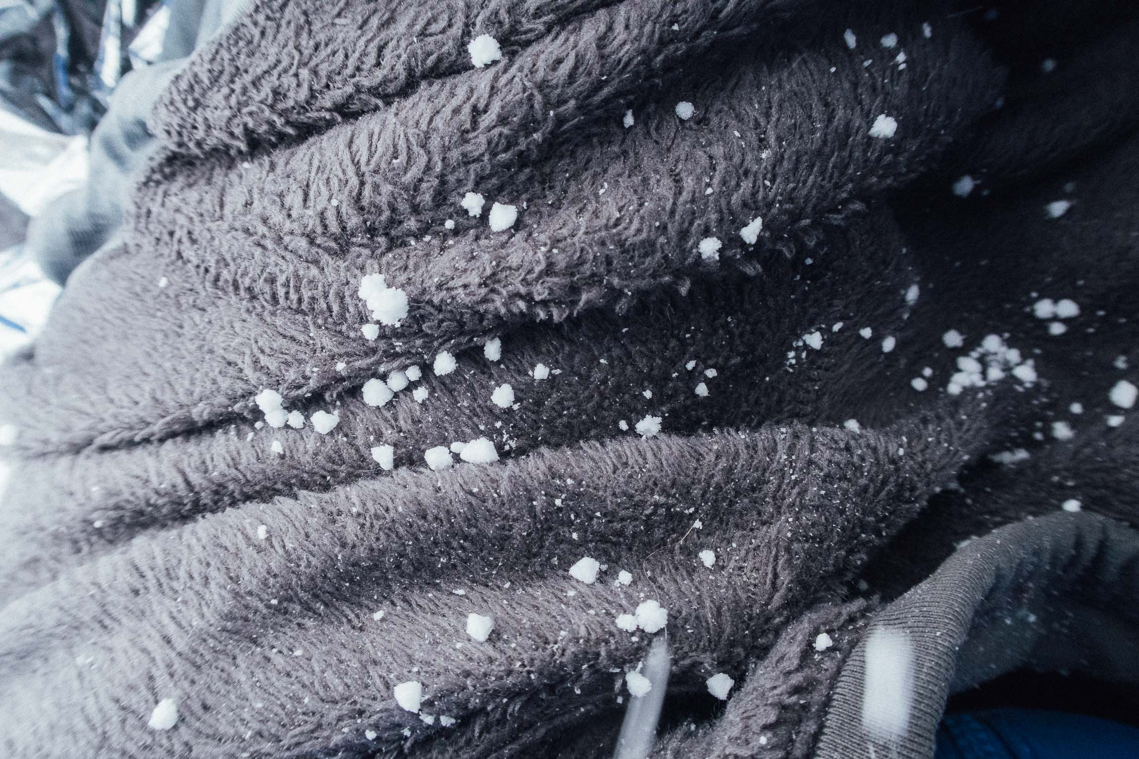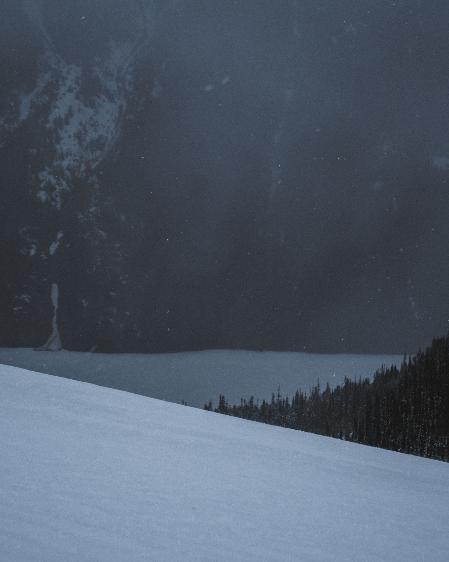 It was impossible to shoot in alpine anymore. By 15:00, we decide to ski down in trees due to bad visibility and avalanche risk.