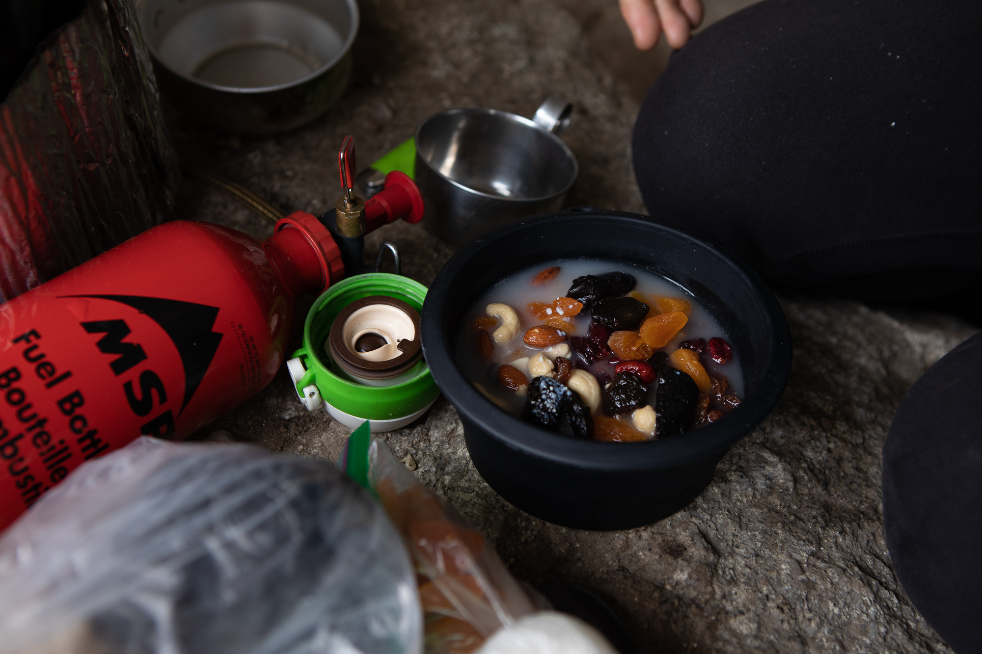 As we had come up to Fairy meadow, we brought more climbing gears than food. Therefore, We had many heavier foods at the bottom. I tried to avoid any heavy stuff in my backpack because it was deadly tough to hike up the trail with heavy load. However, Yuki really pushed her limit and brought many heavy and tasty food, such as salami, cheese and more!