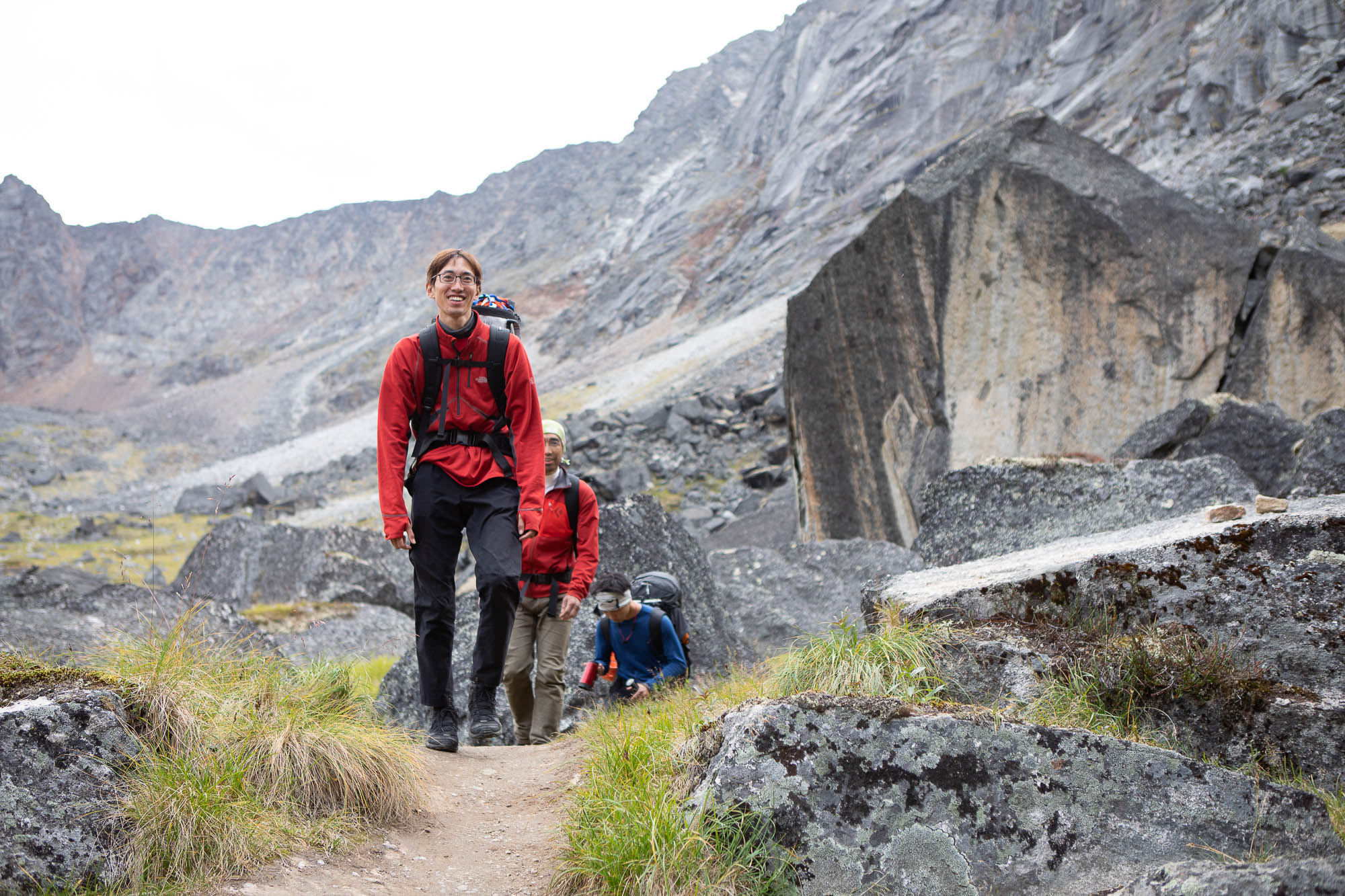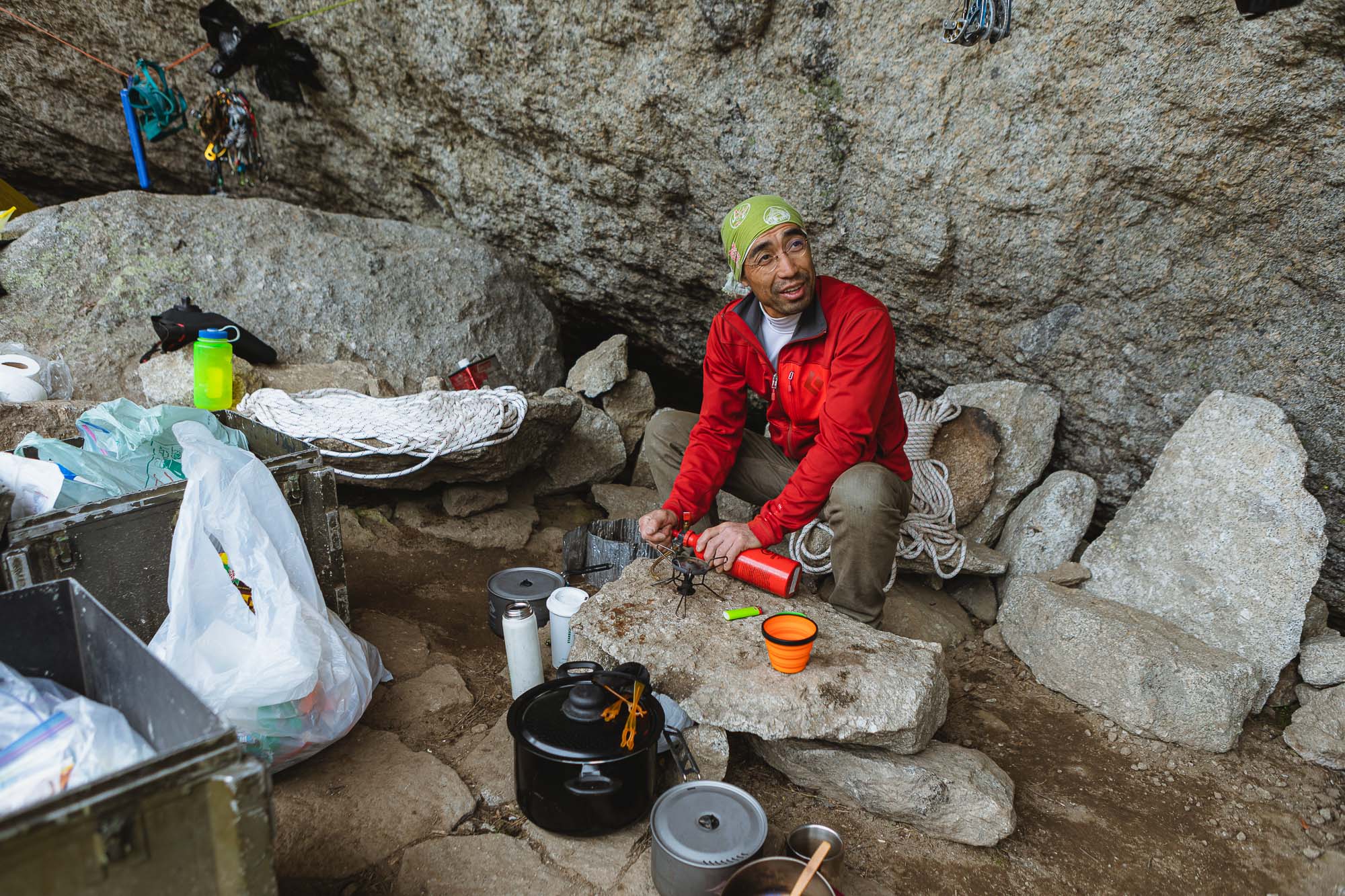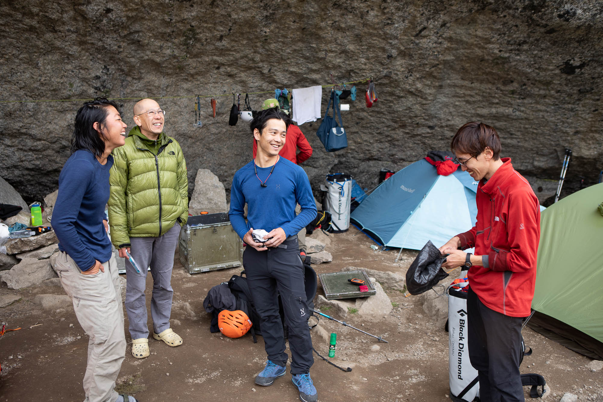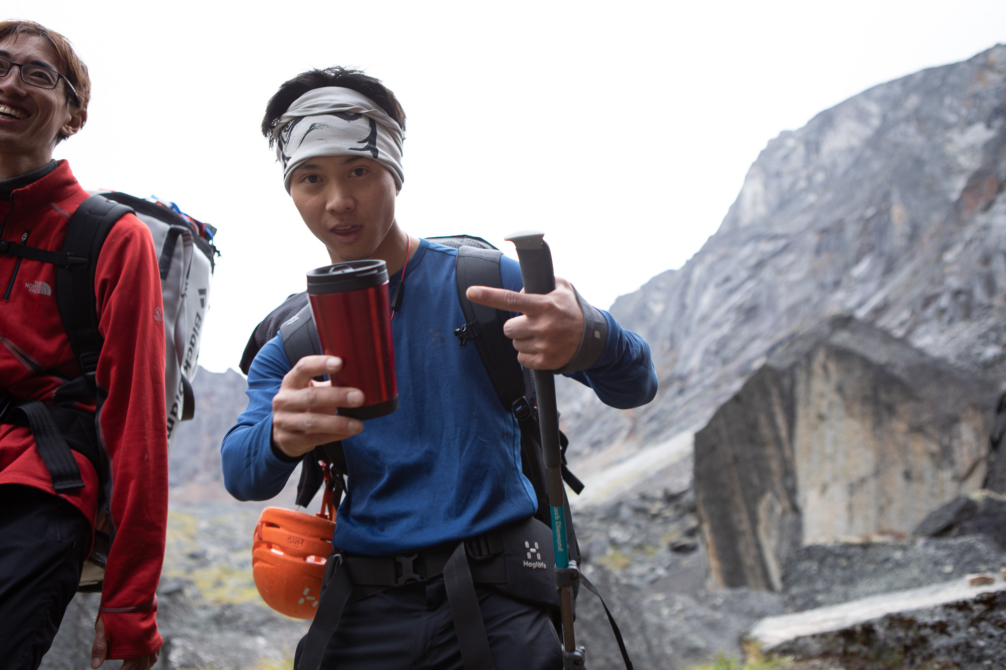 I hoped that they could climb. Because I did not finish the whole route. The weather was not good in the morning, so it probably made the route wet. However the sky looked a little better around noon, so Yuki, Asako, Botch and I went down to Glacier lake to bring up more food.