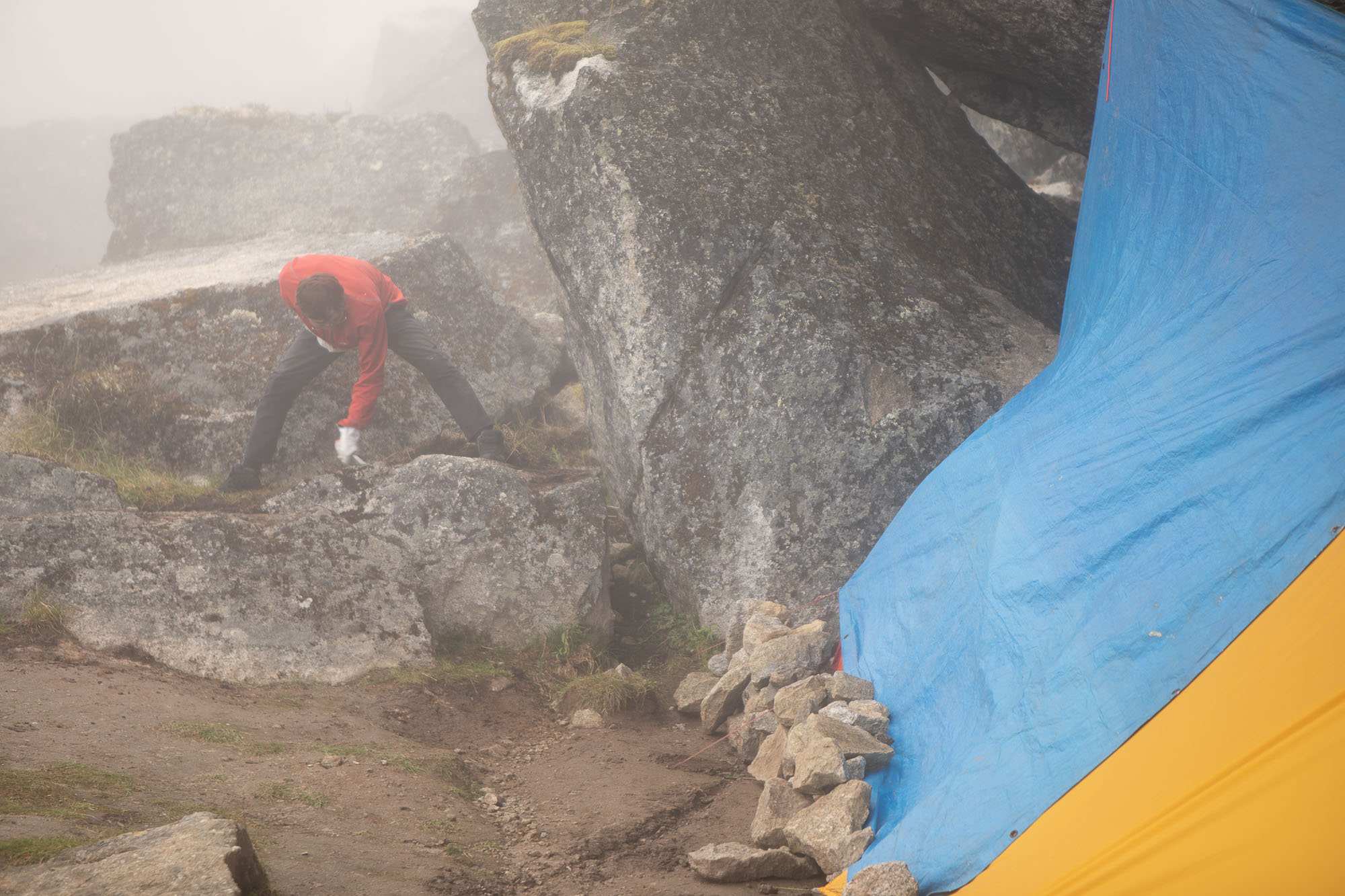 I hiked around the base camp to find good photo shoot location. I was amazing to see the clouds moving fast and changing the landscape dramatically.