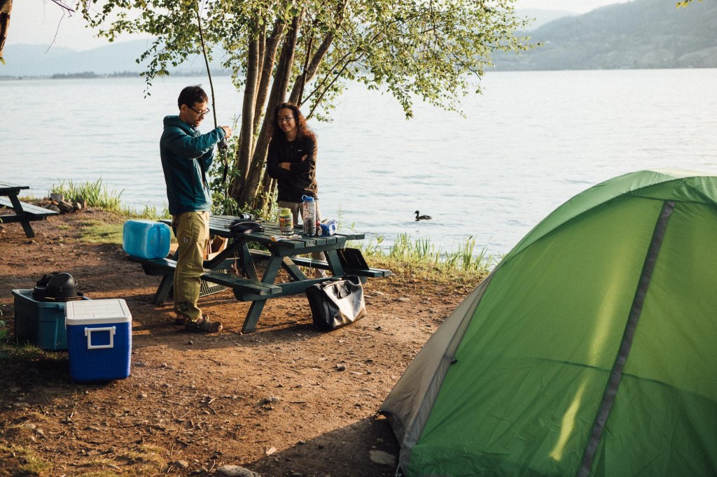 We booked a lake side campsite at Banbury Green RV Park for two nights. The fee was $55+tax per night. I am sure it was not the cheapest, but lake view and warm shower worth for $55. It is only 15mins drive to Skaha bluffs.