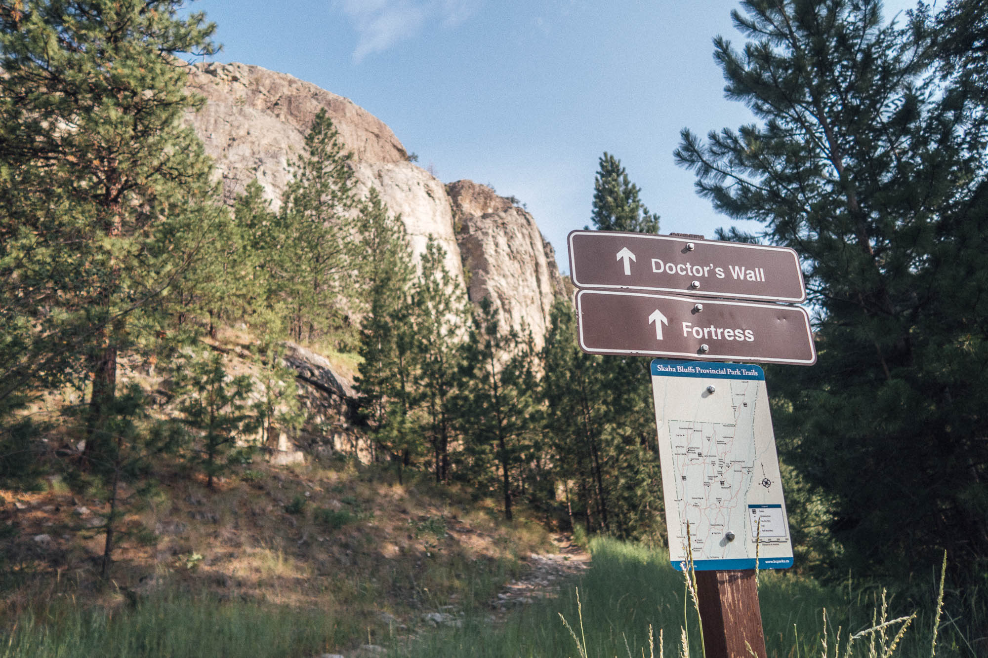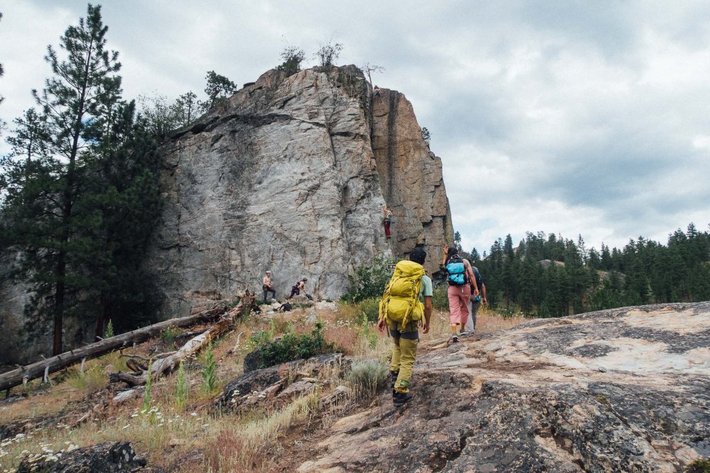 We stopped at Banbury Green RV Park to leave our camp gears and bring a tent up, then drove to Skaha bluffs to climb a bit. At 16:00, we arrived at the parking of Skaha Bluffs and headed to Diamond Back area. It is one of the closest crags from the parking.