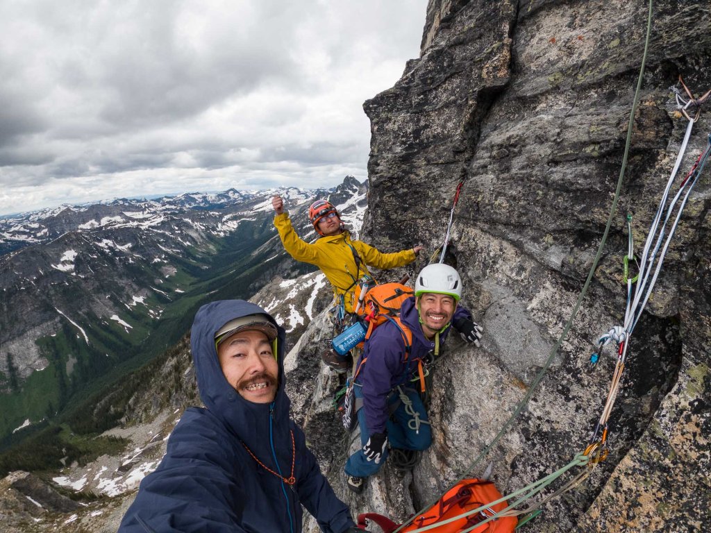 We all came to the summit by 5:00PM. It took us 10 hours!!! Well, it was really enjoyable climb. It was the first time alpine climbing for Nao, and it was his second time for multi pitch climbing. He did it so well!! He told us that the scariest part was the scrambling after roped up climbing.