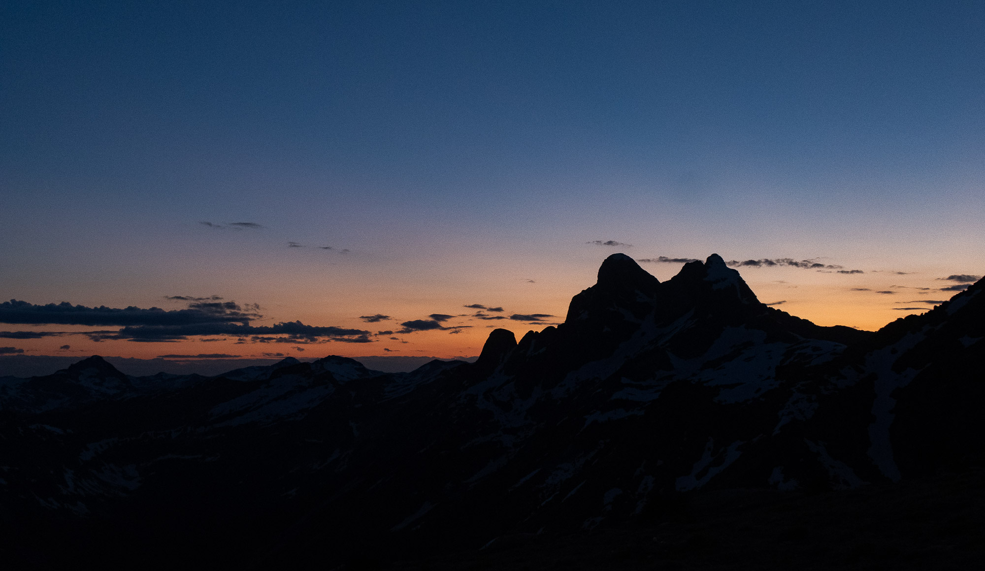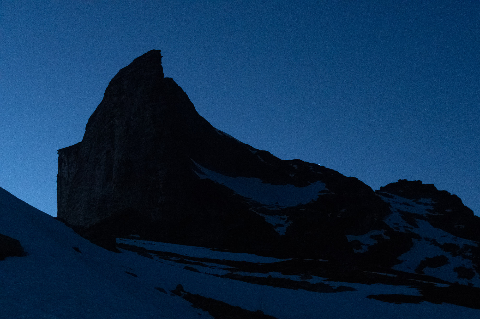 It was already 8:00PM when we came the half way down. The sun was about to go down into the mountains. Luckily a pair of more experienced alpine climbers passed us on the way down and we followed their track. By the time we came back to the Gimli base camp, it was already 9:30PM and in dark.