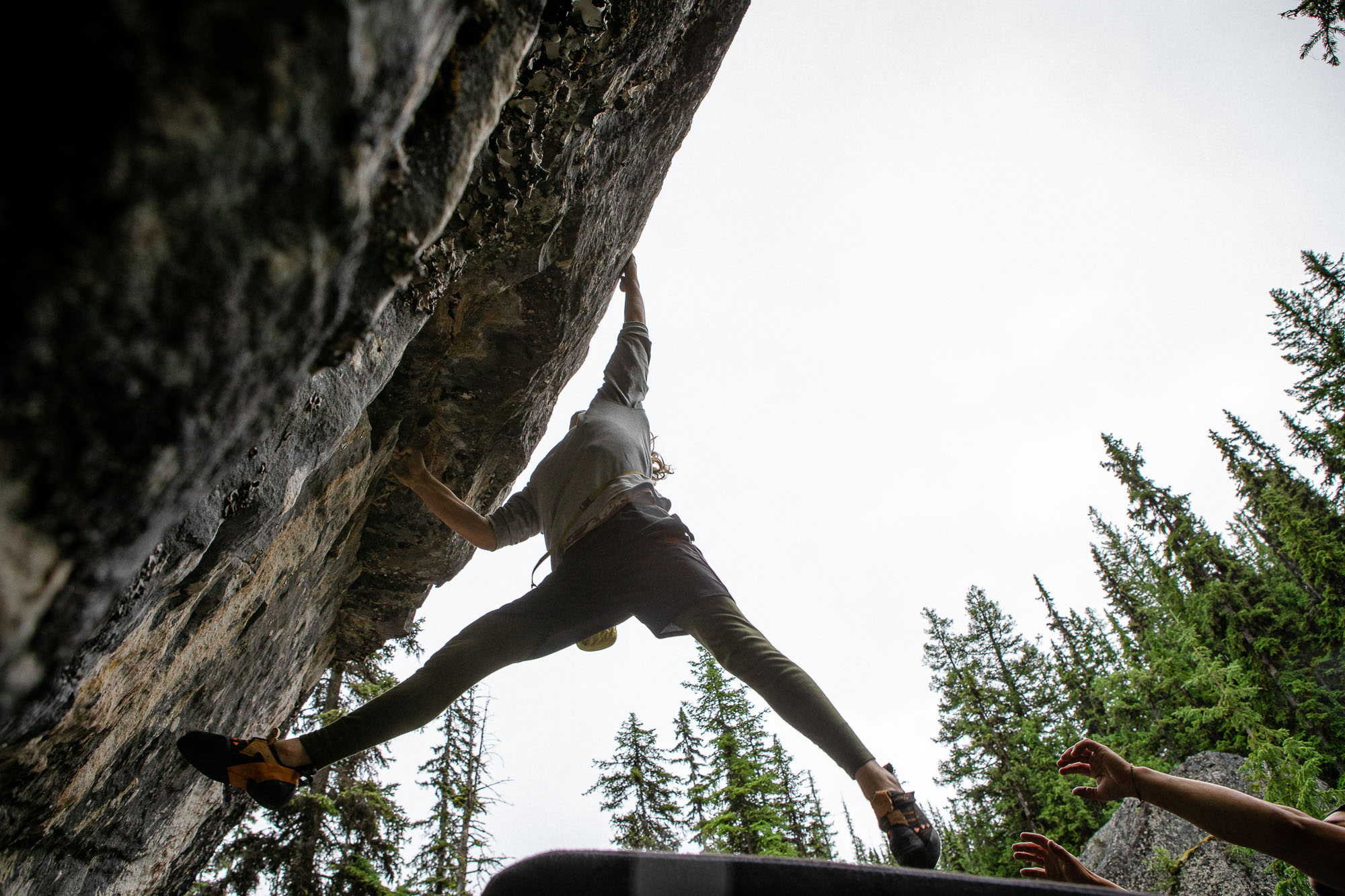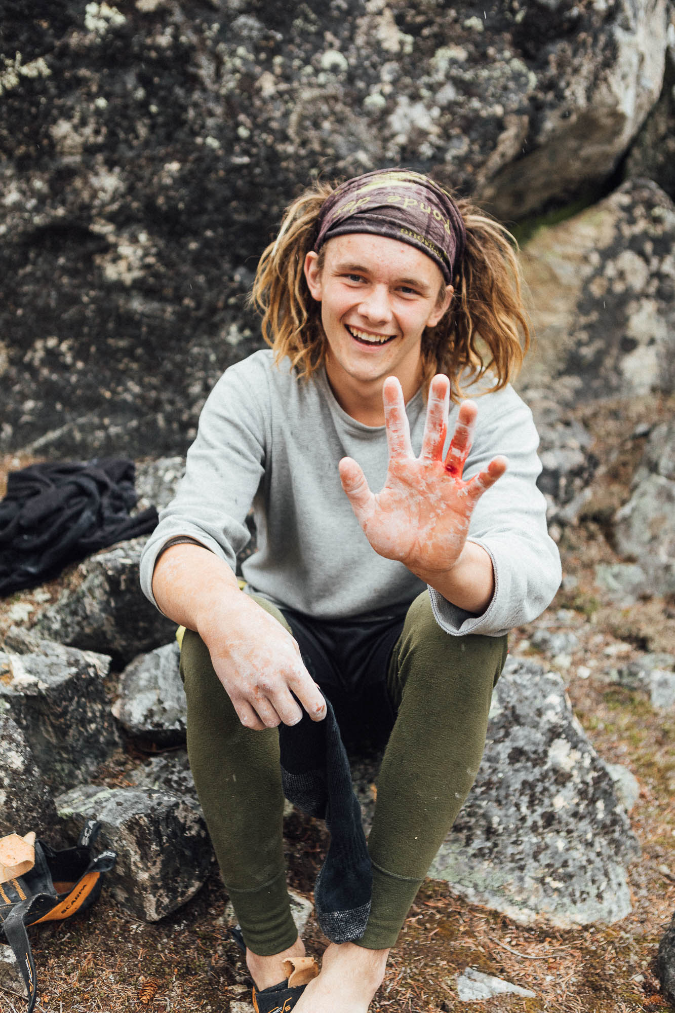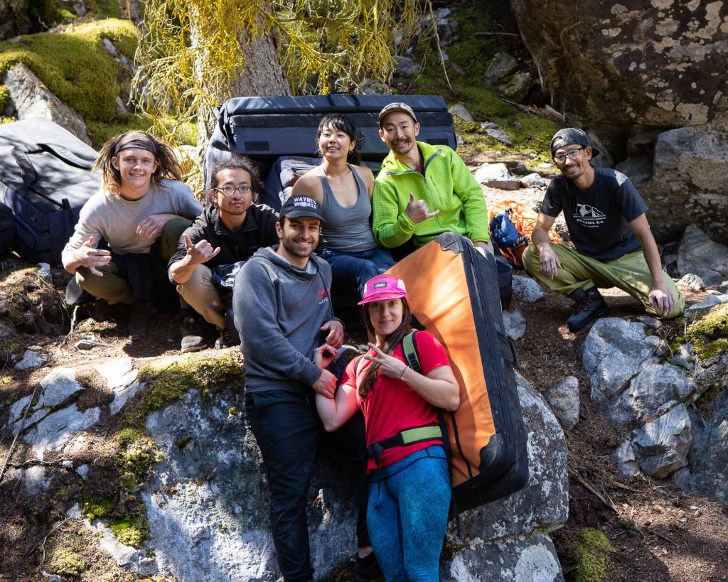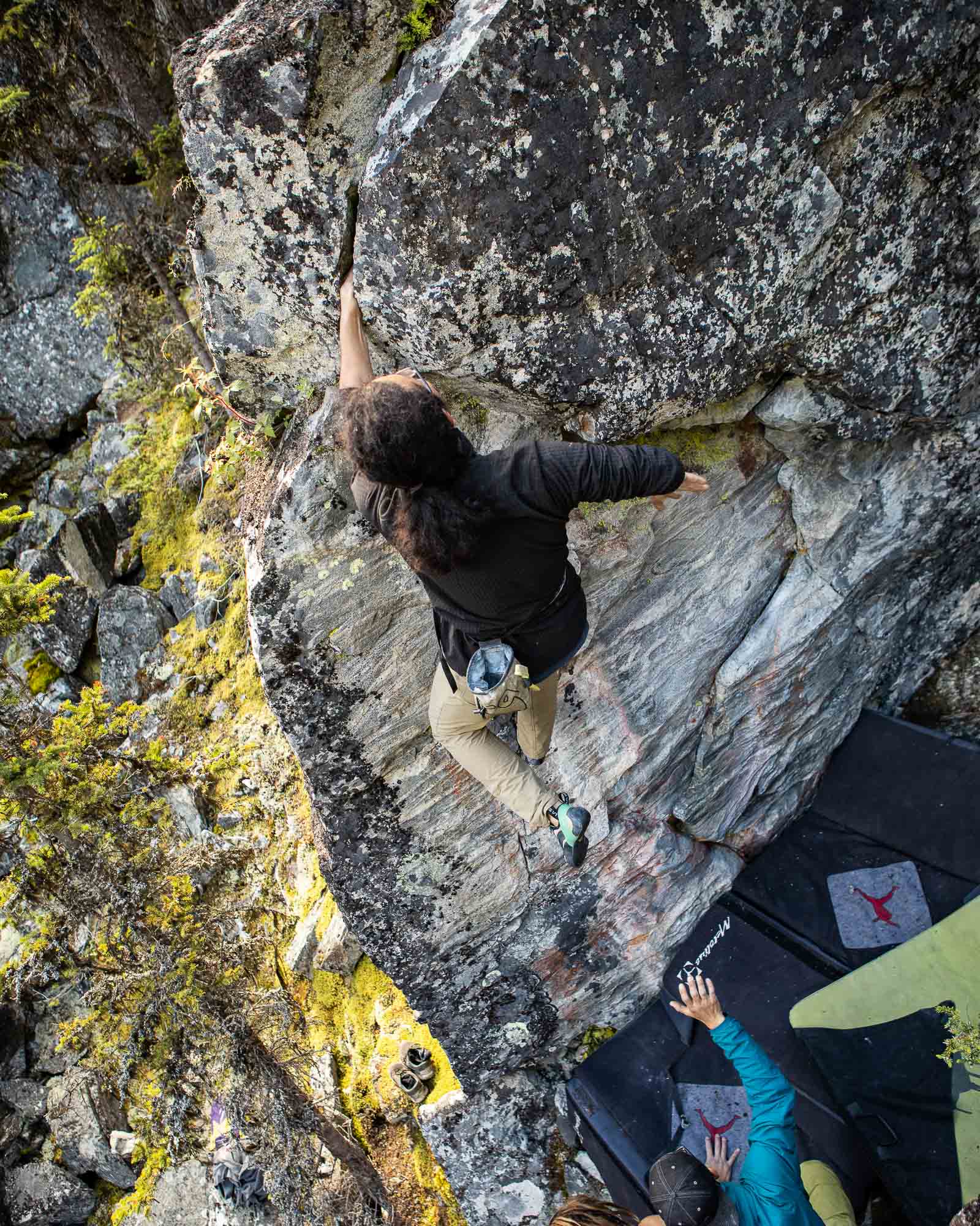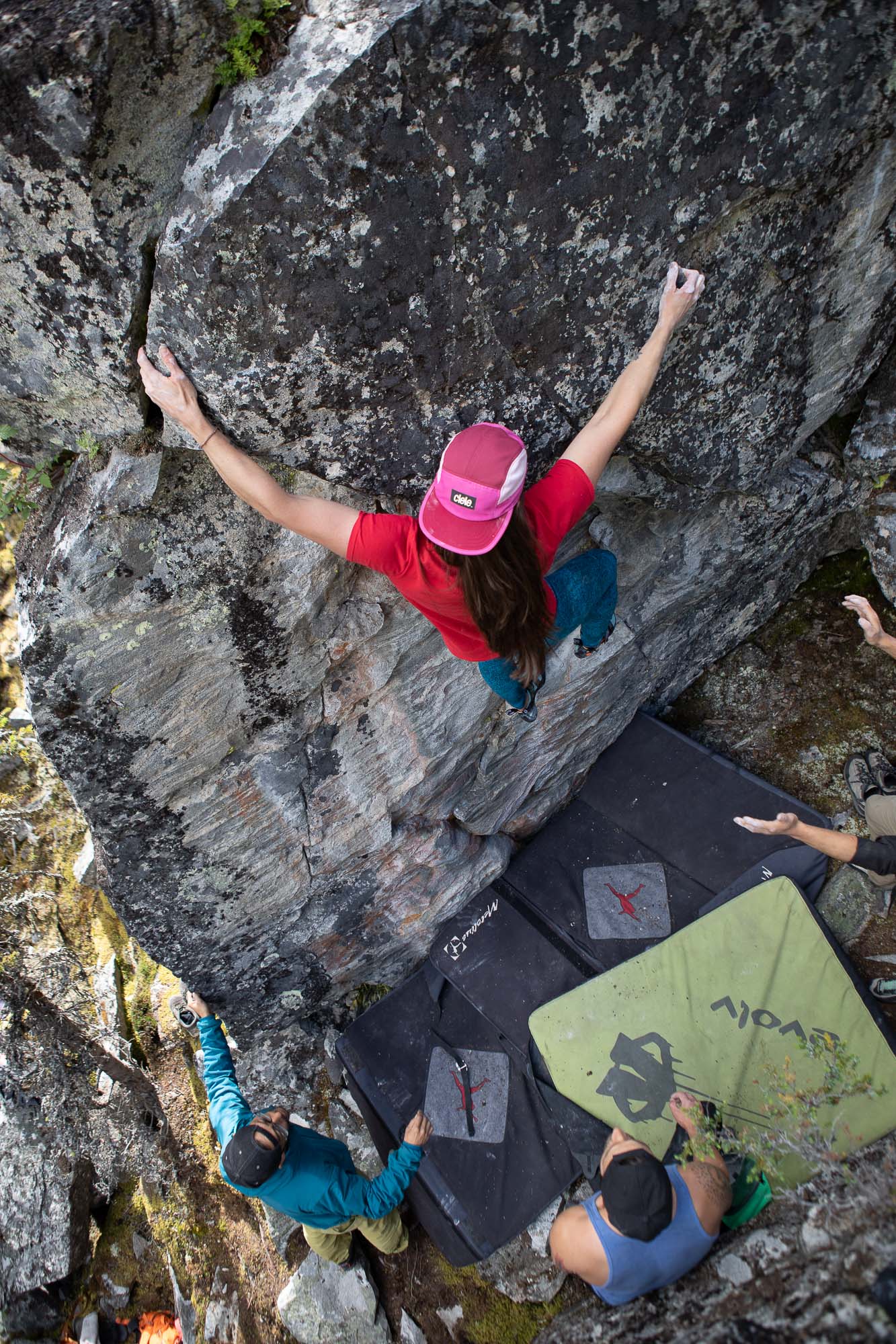 After warm up climbs, we moved to a V6 problem. It starts low on a big boulder, and the line goes up with crimps and sidepulls. We could not climb it, but it was very fun to try.