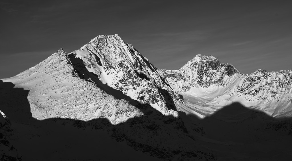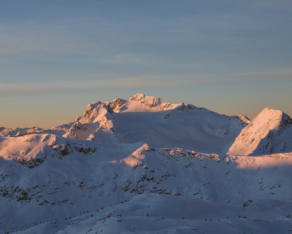 Sunlight hit the peak of Cayoosh mountain at 8:00am, but I was not at the top yet.
