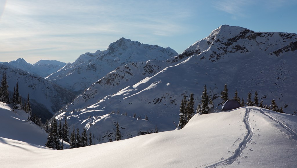I came back to my tent by 9:45, then started to ski/hike down by 12:00.