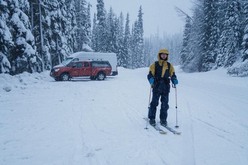 We came back to the parking by 15:30 after 3 laps of deep powder skiing.