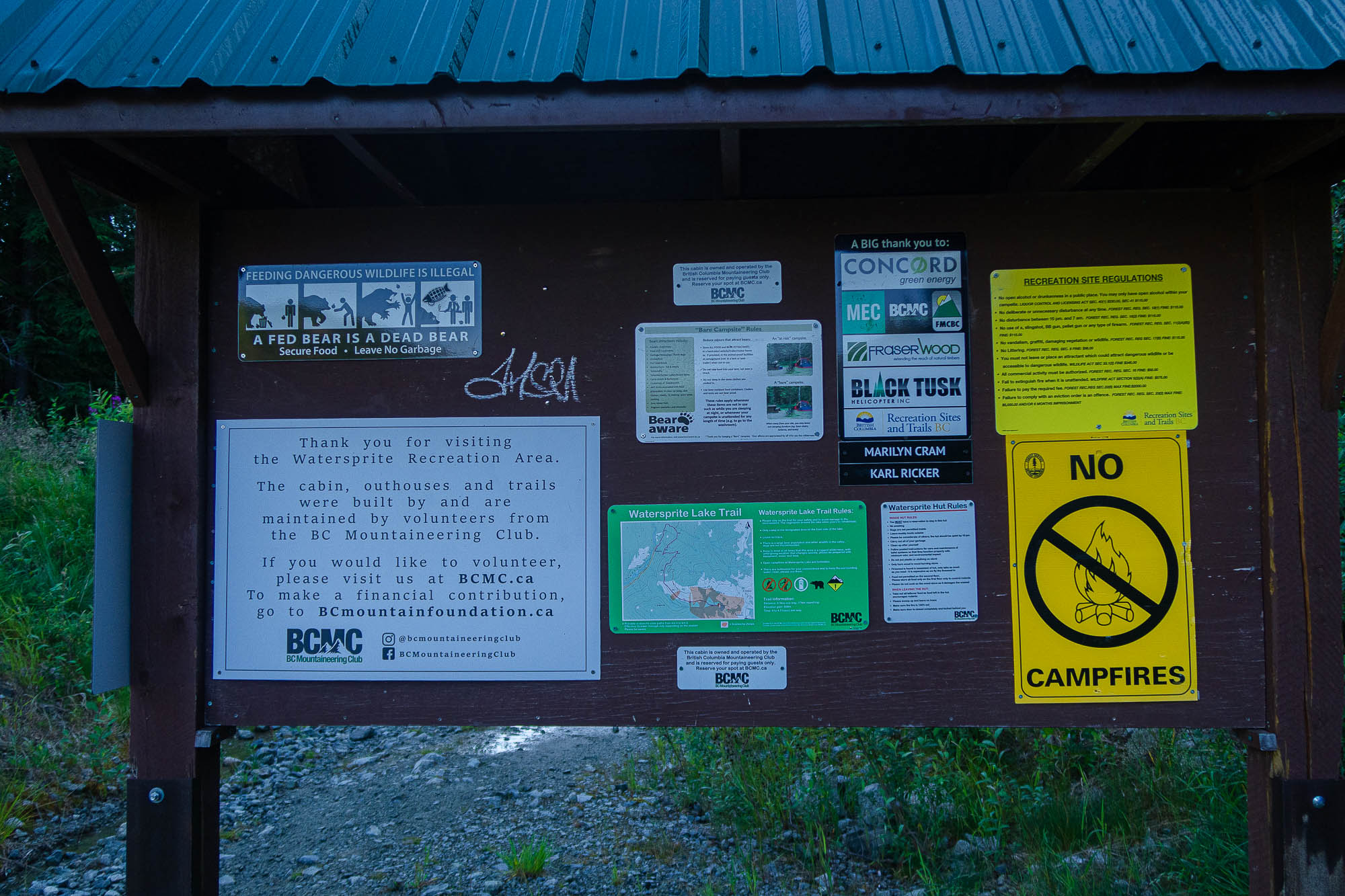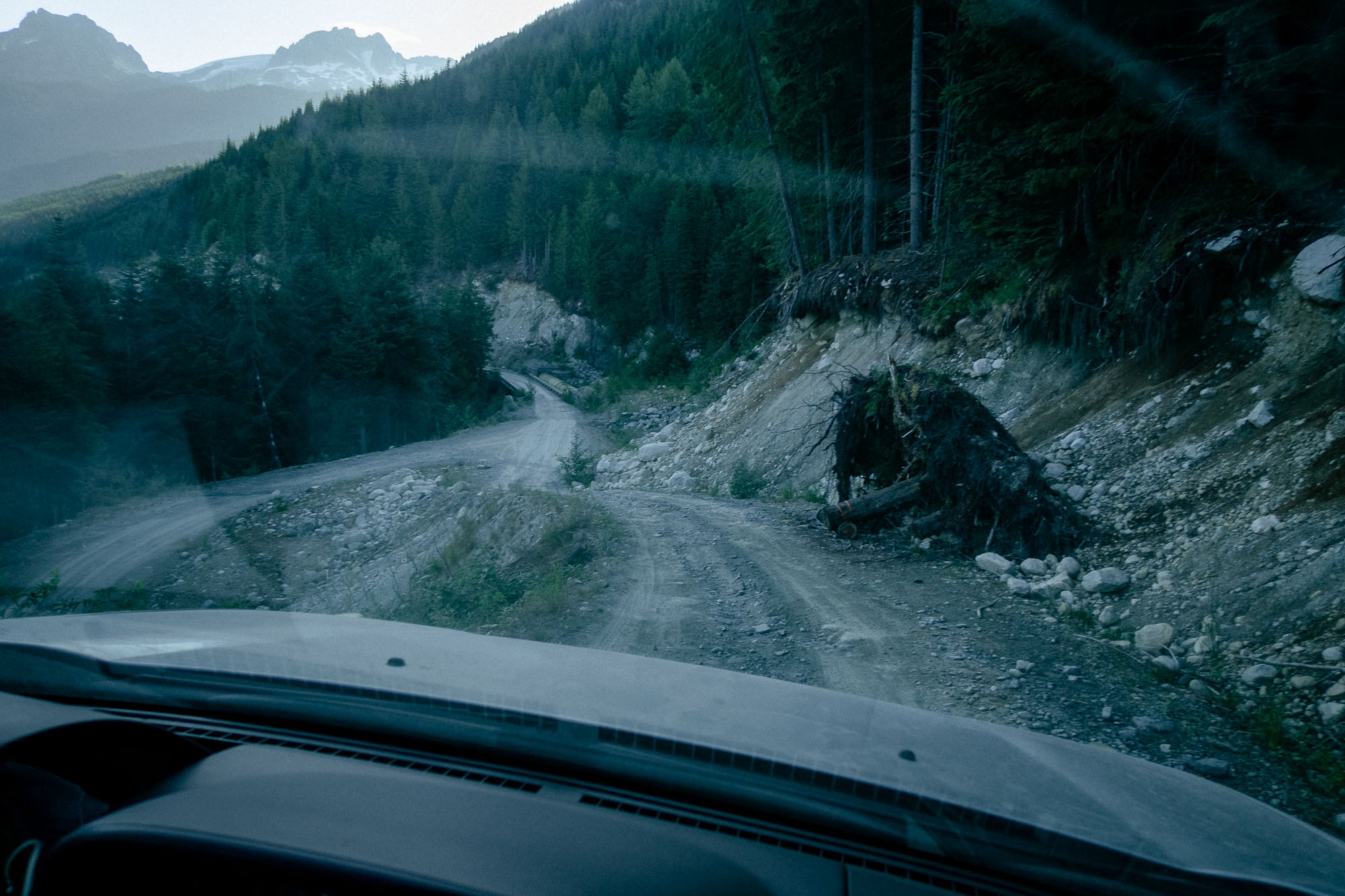 The access to Watersprite trailhead is by Mamuquam FSR. It is 20km long and takes approximately one hour. Follow the main road until Skookum Creek Power Project, then turn left. The road gets rough from here. There are few spurs turning uphill, but ignore them and continue onto the main road. The road goes down and there are bridges. A big tree bottom is on the road. Then, the parking is at the end of the road, and cars are parked on left side.